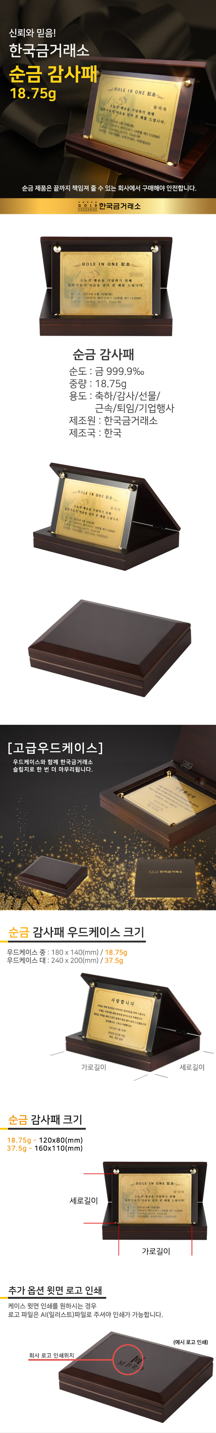 순금 감사패 18.75g